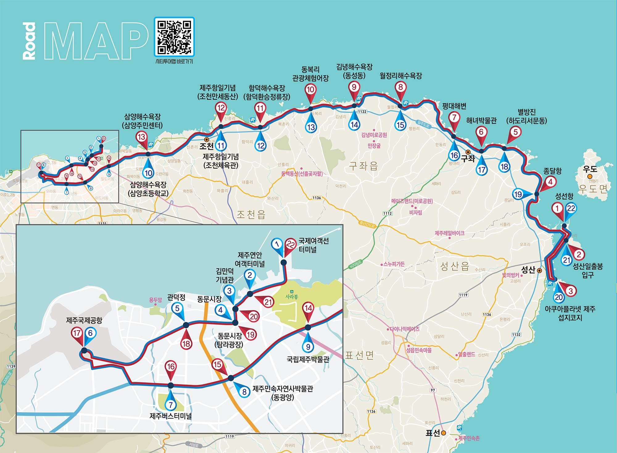 제주도의 서귀포, 성산, 한림과 고산 등 제주도 전역을 연결하는 횡단도로와