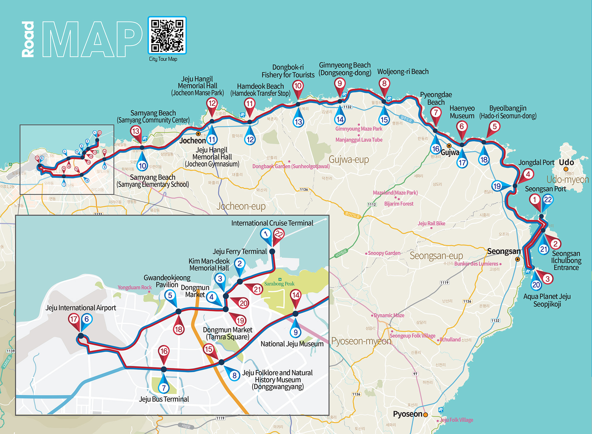You can use the bus that connects the entire Jeju Island, such as Seogwipo, Seongsan, Hallim, and Gosan, as well as cross-roads, circuit roads, and mid-mountain roads.